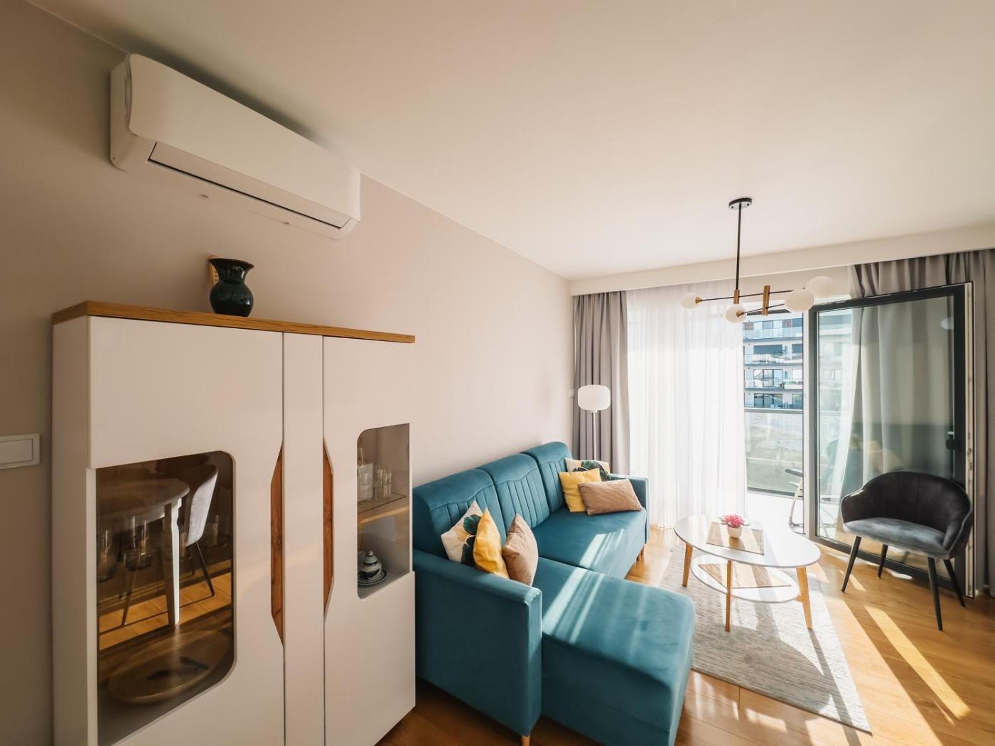 Apartament z 1 sypialnią. The private pool and sauna are the special features of this apartment. Featuring a private entrance, this air-conditioned apartment consists of 1 living room, 1 separate bedroom and 1 bathroom with a shower and a hairdryer. In the kitchen, guests will find a stovetop, a refrigerator, a dishwasher and kitchenware. The apartment provides a flat-screen TV, a washing machine, soundproof walls, a coffee machine as well as river views. The unit offers 2 beds. Apartament - 4 osobowy. Powierzchnia pokoju ok.: 43 mkw.