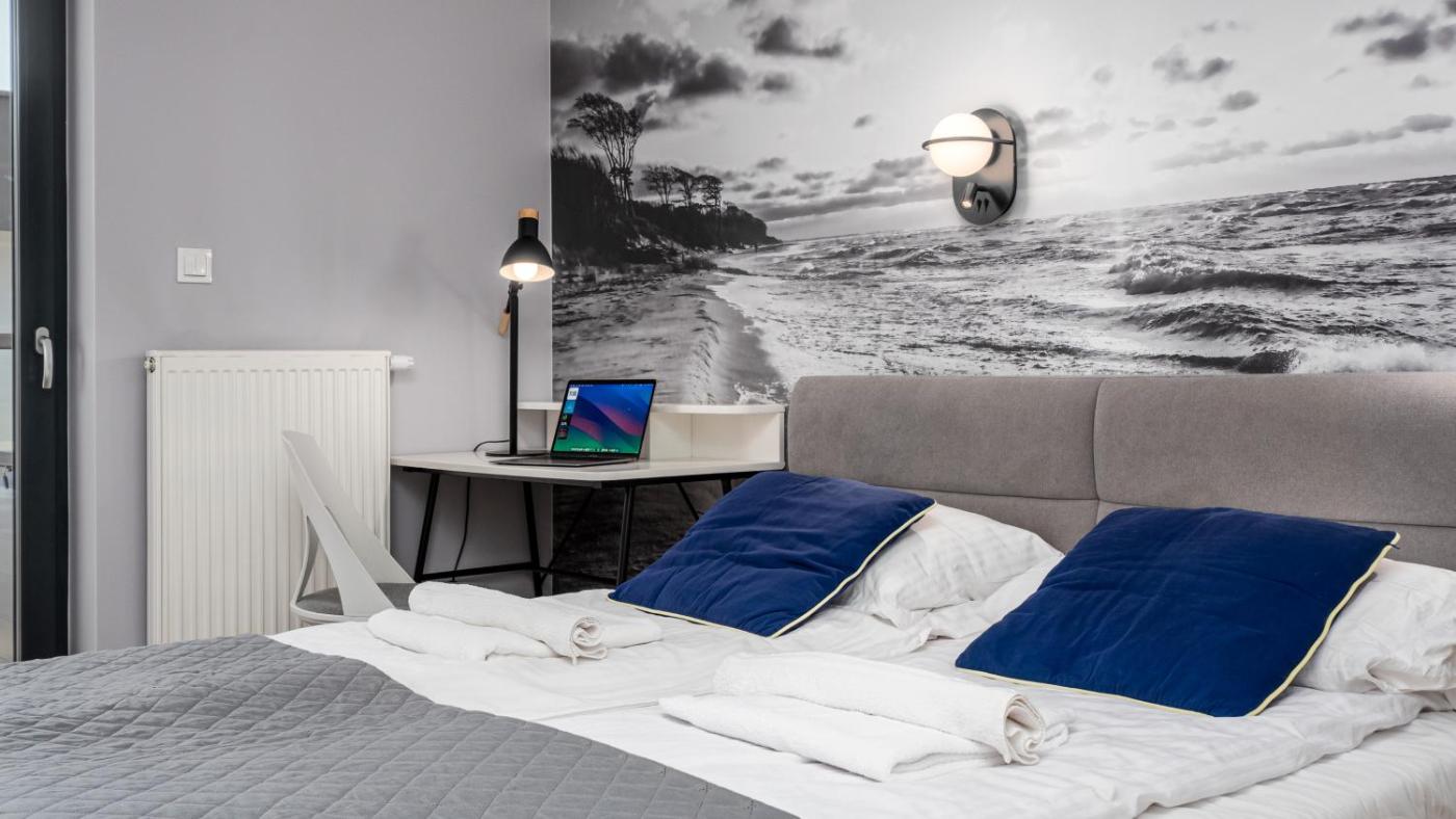 Room #1586670601. This apartments standout feature is the sauna. This apartment includes 1 living room, 1 separate bedroom and 1 bathroom with a hairdryer. In the fully equipped kitchenette, guests will find a stovetop, a refrigerator, a dishwasher and kitchenware. Boasting a balcony with sea views, this apartment also offers a washing machine and a flat-screen TV. The unit has 3 beds. Apartament - 5 osobowy. Powierzchnia pokoju ok.: 50 mkw.