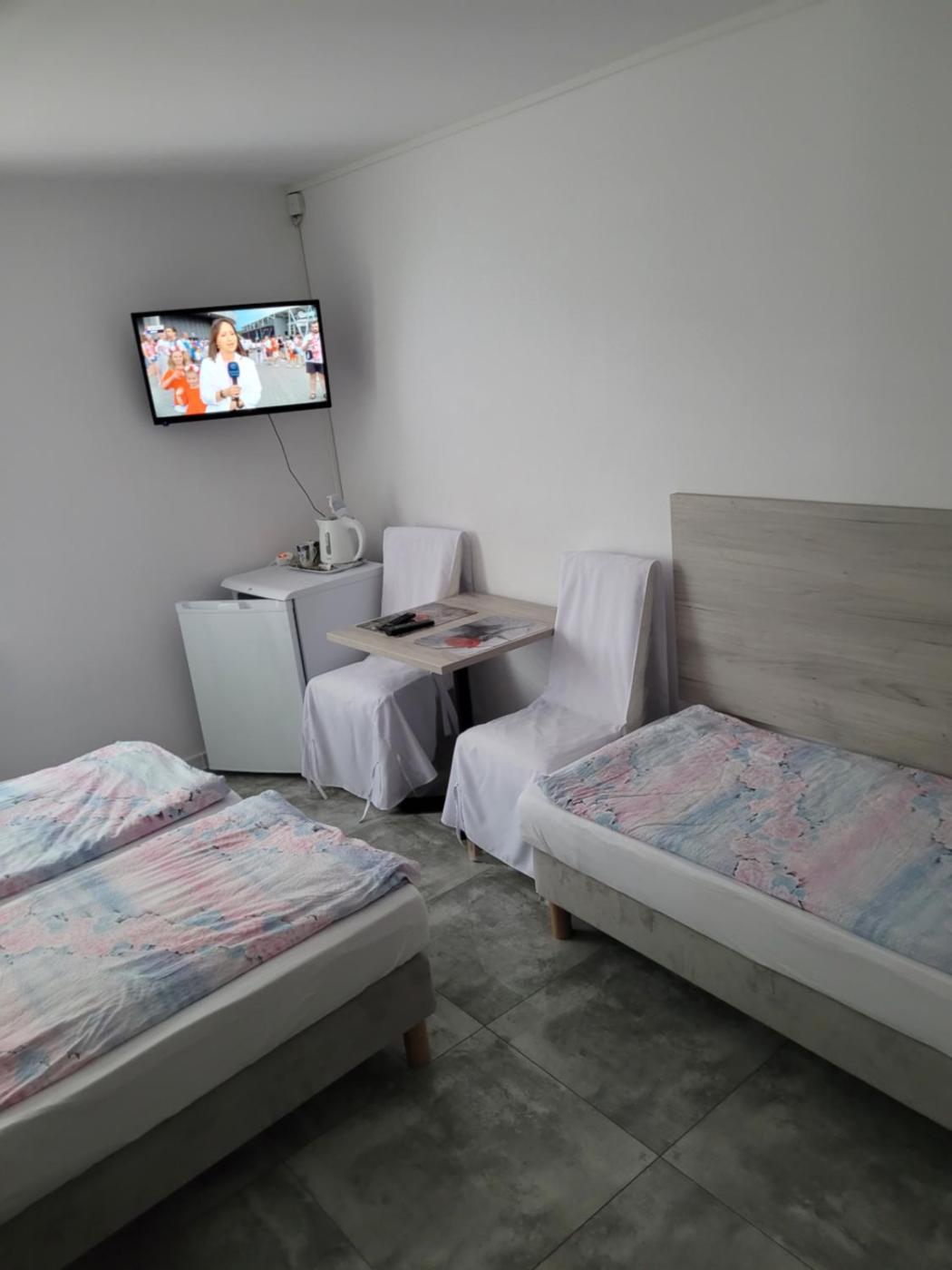 Pokój Czteroosobowy z prysznicem. The quadruple room has a private bathroom fitted with a shower and a hairdryer. The quadruple room features a tea and coffee maker, a wardrobe, a tiled floor, a flat-screen TV with cable channels, as well as city views. The unit has 2 beds. Pokój Czteroosobowy - 4 osobowy. Powierzchnia pokoju ok.: 21 mkw. ;