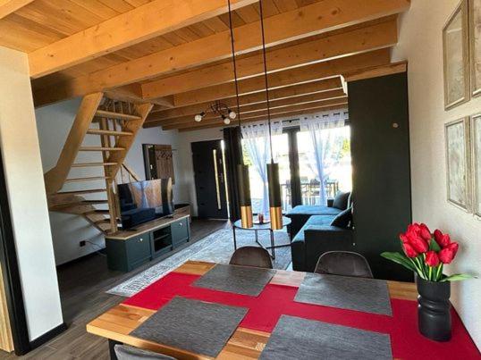 Domek z 3 sypialniami. Boasting a private entrance, this chalet comes with 1 living room, 2 separate bedrooms and 1 bathroom with a shower and a hairdryer. Guests will find a stovetop, a refrigerator, kitchenware and an electric kettle in the kitchenette. The chalet also includes a barbecue. Featuring a terrace with garden views, this chalet also features a seating area and a flat-screen TV. The unit has 4 beds. Domek - 6 osobowy. Powierzchnia pokoju ok.: 65 mkw. ;