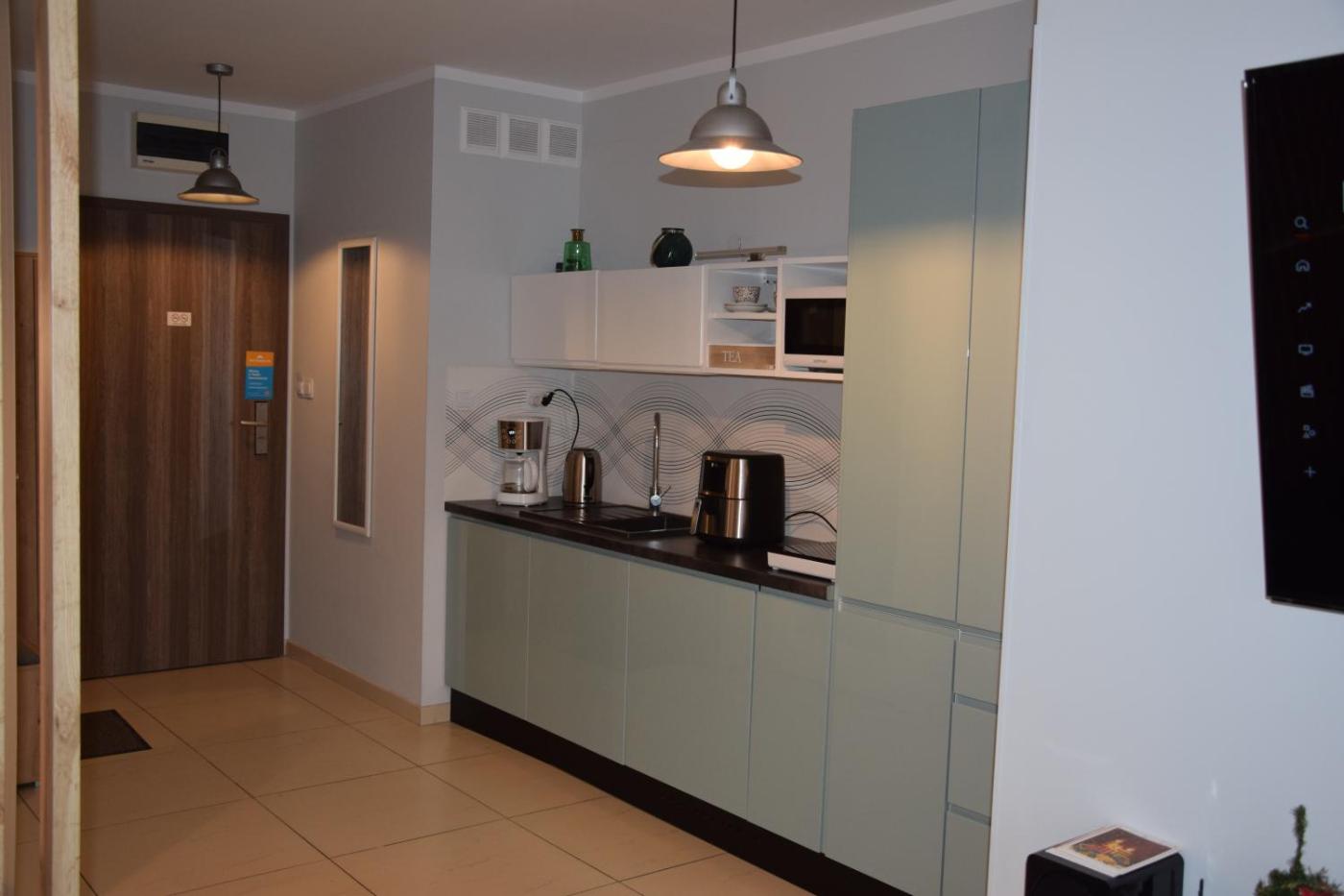 Oferta apartamentu obejmuje sypialnię (1), salon, aneks kuchenny z pełnym wyposażeniem, w tym lodówką i ekspresem do kawy, a także łazienkę (1) z prysznicem oraz suszarką do włosów. W apartamencie zapewniono ręczniki i pościel.