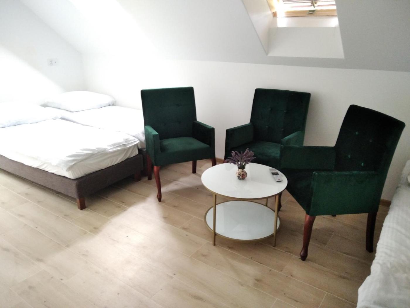 Pokój Trzyosobowy z prywatną łazienką. The triple room provides a wardrobe, an electric kettle, as well as a private bathroom featuring a shower and a hairdryer. The unit offers 2 beds. Pokój Trzyosobowy - 4 osobowy. Powierzchnia pokoju ok.: 15 mkw. ;