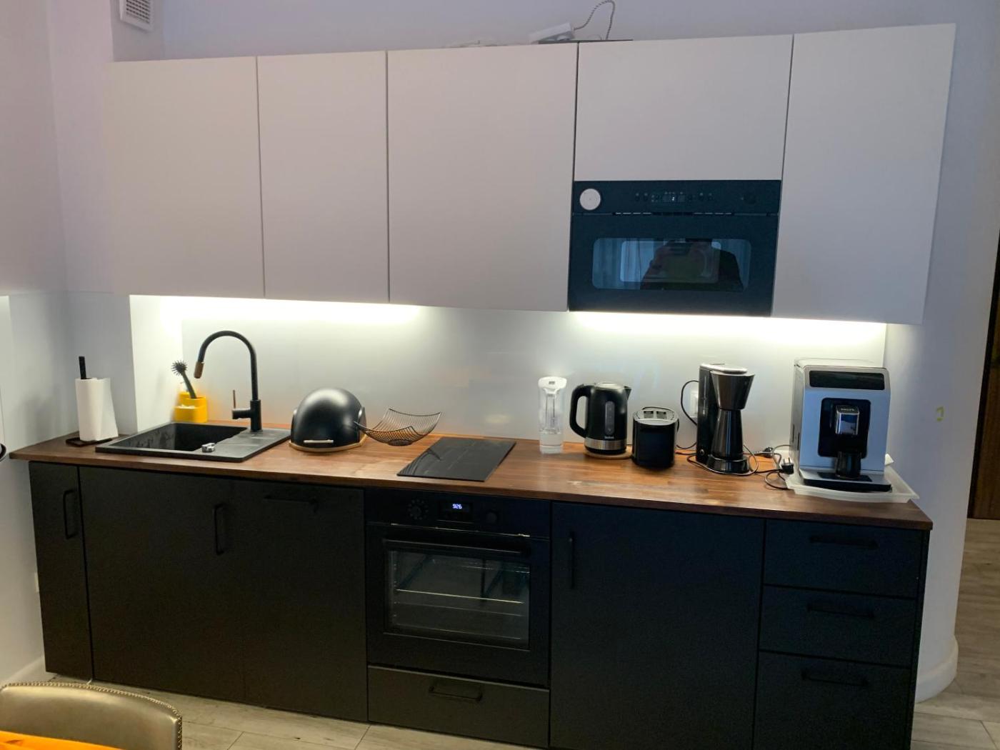 Oferta apartamentu obejmuje sypialnię (1), salon, kuchnię z pełnym wyposażeniem, w tym lodówką i ekspresem do kawy, a także łazienkę (1) z bidetem oraz prysznicem. W apartamencie zapewniono ręczniki i pościel.