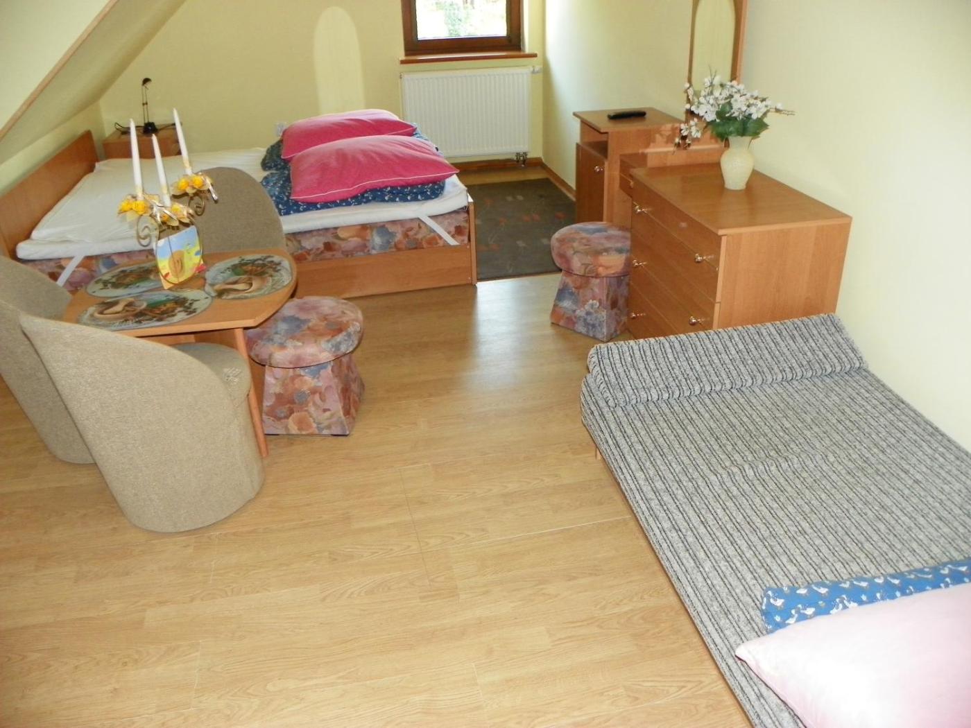 Pokój trzyosobowy. Guests will find a refrigerator, kitchenware, a microwave and a tea and coffee maker in the fully equipped kitchenette. The triple room also features a barbecue. This triple room is comprised of a flat-screen TV with cable channels, a private bathroom as well as a terrace with garden views. The unit has 2 beds. Pokój Trzyosobowy - 4 osobowy. Powierzchnia pokoju ok.: 28 mkw. ;