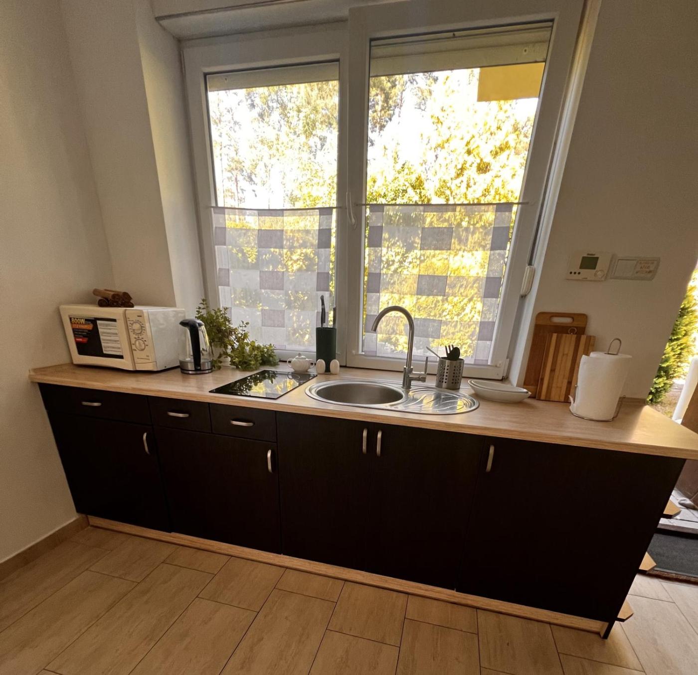 Dom z 2 sypialniami. Featuring 2 bedrooms, this holiday home offers 1 bathroom with a shower, a seating area and terraceyou can relax. Guests will find a stovetop, a refrigerator, kitchenware and a microwave in the well-fitted kitchen. The holiday home also has a barbecue. Boasting a balcony with garden views, this holiday home also offers a private entrance and a flat-screen TV with cable channels. The unit has 2 beds and 1 futon. Dom wakacyjny - 5 osobowy. Powierzchnia pokoju ok.: 60 mkw. ;