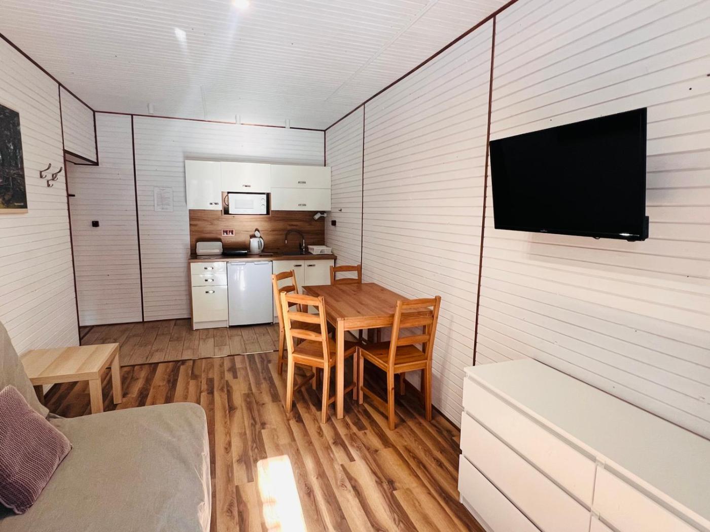 Domek. Featuring 1 bedroom and 1 bathroom with a shower, this chalet offers a well-fitted kitchenette and a terrace. Guests will find a stovetop, a refrigerator, kitchenware and a microwave in the well-fitted kitchenette. The chalet also has a barbecue. Boasting an outdoor dining area, this chalet also offers a private entrance, a wardrobe and a flat-screen TV. The unit has 2 beds. Domek - 3 osobowy. Powierzchnia pokoju ok.: 22 mkw. ;