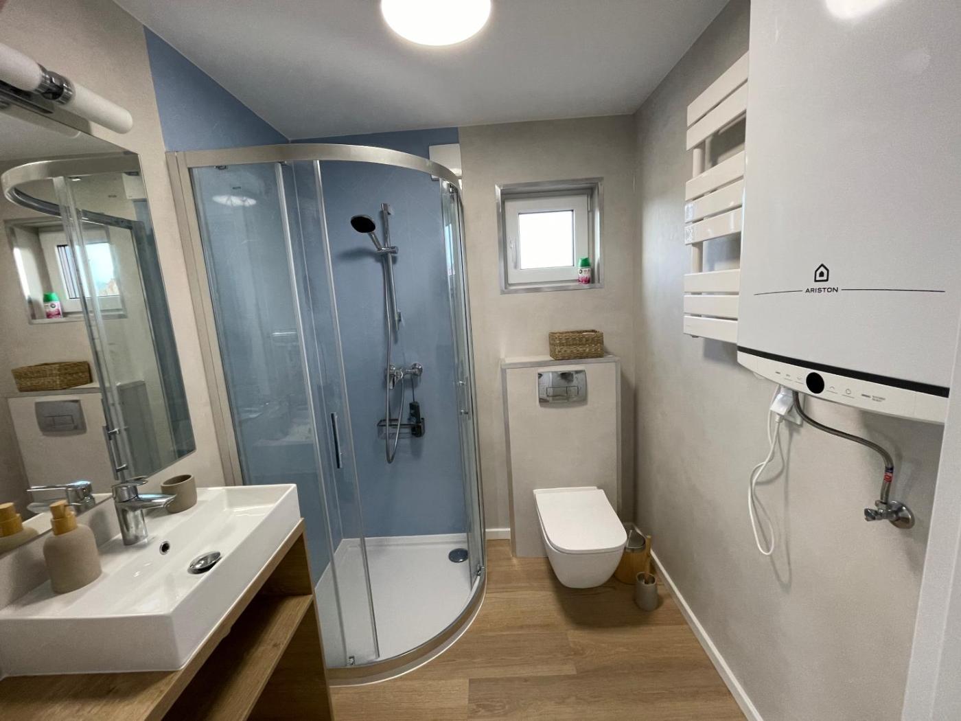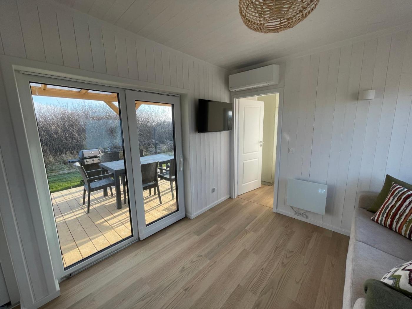 Dom z 2 sypialniami. This air-conditioned holiday home consists of 1 living room, 2 separate bedrooms and 1 bathroom with a shower. Guests will find a stovetop, a refrigerator, a dishwasher and kitchenware in the kitchenette. The holiday home also offers a barbecue. Featuring a terrace with garden views, this holiday home also provides a tea and coffee maker and a flat-screen TV with satellite channels. The unit offers 4 beds. Dom wakacyjny - 6 osobowy. Powierzchnia pokoju ok.: 40 mkw. ;