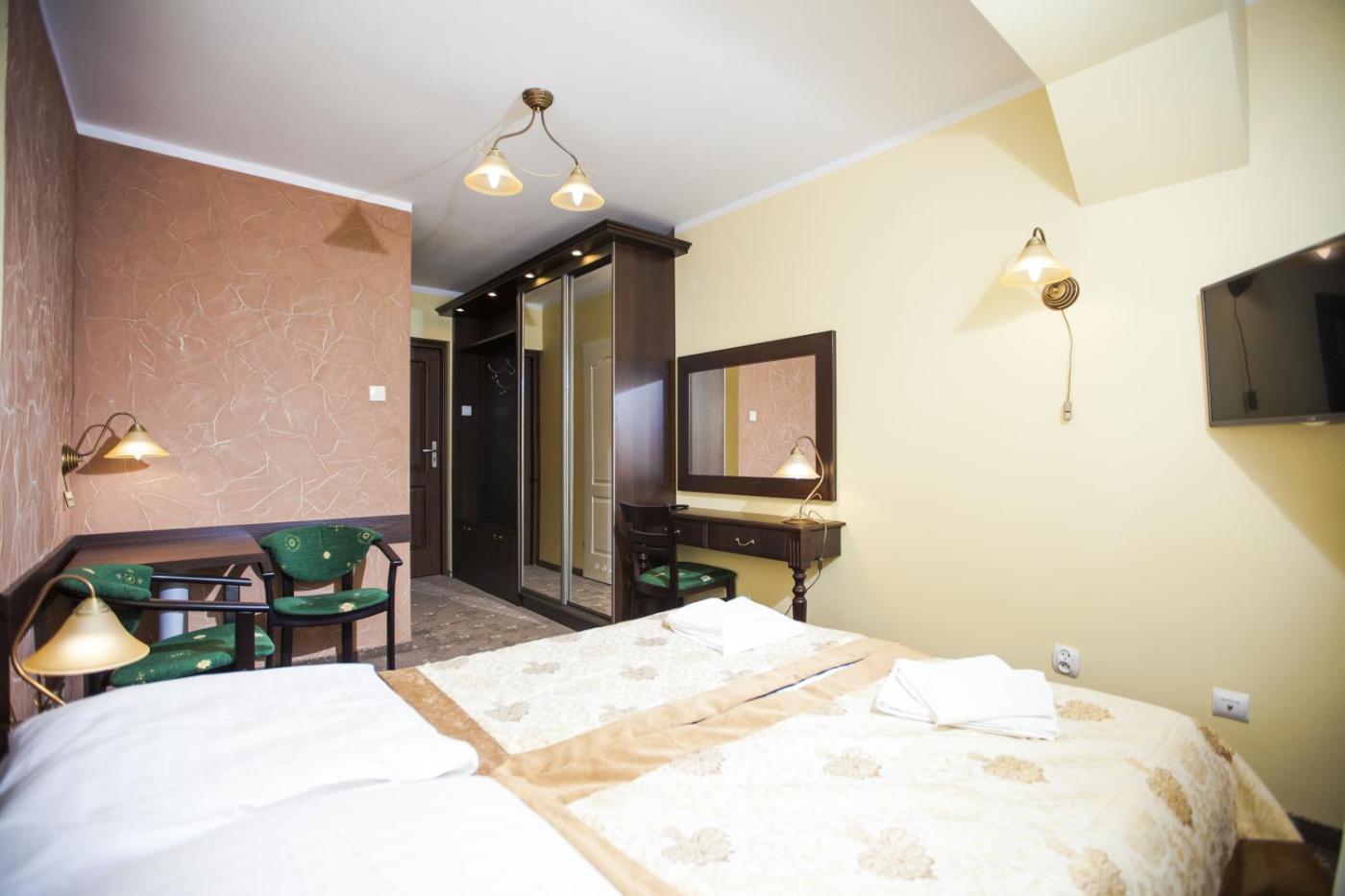 Pokój dwuosobowy. The double room features a wardrobe, a carpeted floor, as well as a private bathroom boasting a shower and a hairdryer. This double room provides a flat-screen TV. The unit has 1 bed. Pokój Dwuosobowy - 2 osobowy. Powierzchnia pokoju ok.: 15 mkw. ;