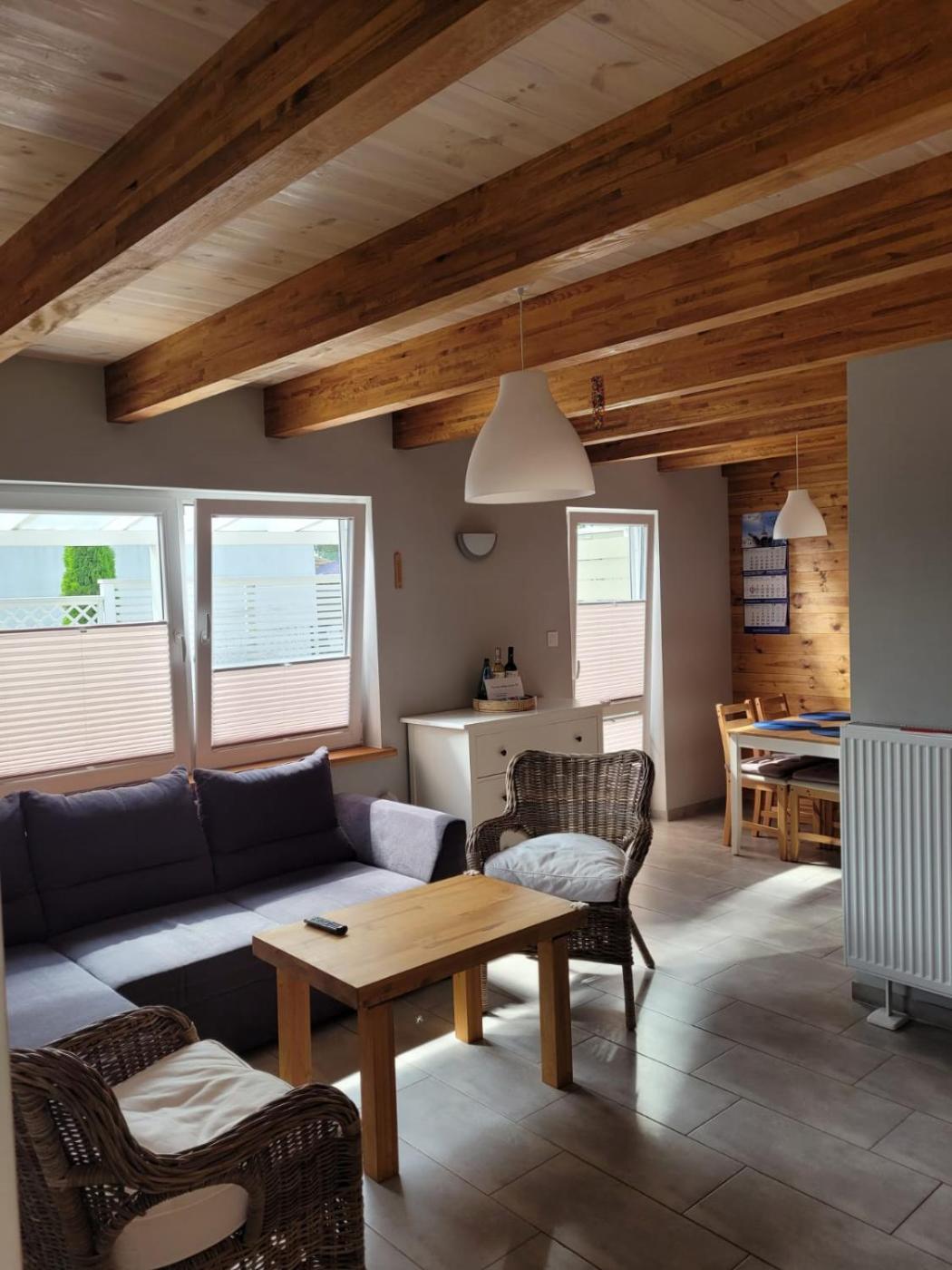Dom z 2 sypialniami. Featuring a private entrance, this holiday home is comprised of 1 living room, 2 separate bedrooms and 1 bathroom with a shower and a hairdryer. Guests will find a stovetop, a refrigerator and a microwave in the kitchenette. The holiday home also has a barbecue. There is a washing machine, a coffee machine and a terrace and complimentary winechampagne is featured for guests. The unit offers 4 beds. Dom wakacyjny - 6 osobowy.